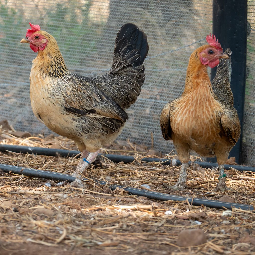 Rhode Island Red Bantams are very small, sweet, flighty, tame birds. They love to sit on shoulders and eat treats from your hands! They don’t need a super big run, but work better with other bantams. I recommend these birds for a good little pet!
